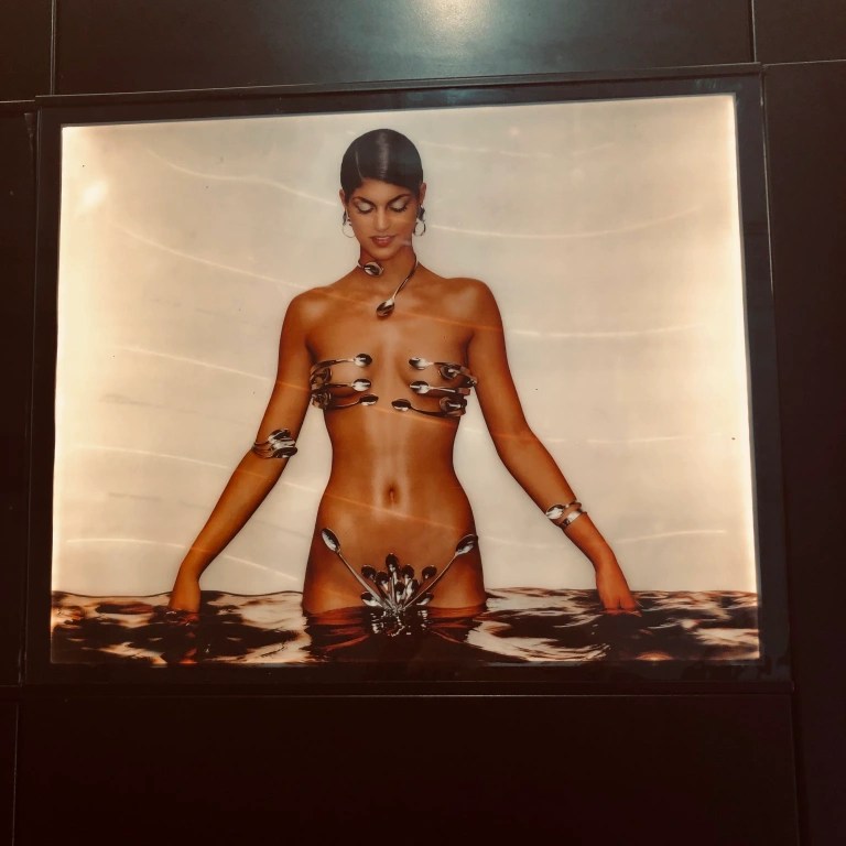 I make my way out of the building but still remain inside of another building, a tunnel structure that leads to the roundabout where my munchkin awaits. To my right there’s an all male barbershop, the window has a decal with a bearded skull wearing aviator sunglasses,(the logo has since ditched the glasses) very hipster. To my left are vending machines with iced tea, coffee, and an assortment of snacks. What’s NOT hipster is the advertisement next to the coffee vending machines, it’s a woman with cinnamon colored skin, completely naked except all her lady parts are covered with spoons… Well played graphic designer, I hope you got promoted. This ad has been here as long as I can remember. I guess naked ladies are timeless. After exiting the tunnel there’s no sign of my husband, in my mind I review my schedule for the day and enjoy the overcast sky and breeze.