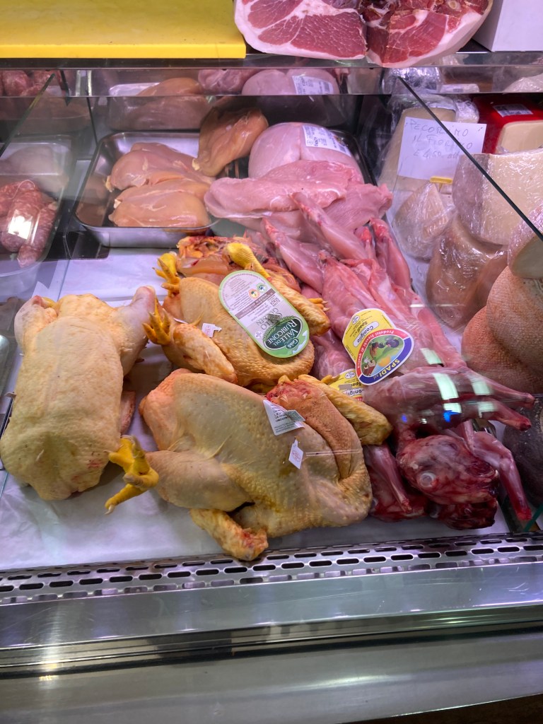 Butcher culture is a significant value I have come to recognize in Italian society. Almost akin to a religious devotion. Every family demonstrates unwavering loyalty, placing their absolute trust in their chosen butcher. Reputable butchers are well known and greatly esteemed, borderline celebrity status. Being that food is the center of every Italian’s day, but especially important holidays, butchers play a huge role in our community. This morning, after having just gone to the butcher two days ago, I thought that I would beat the rush and go early at 9:00 in the morning! When I walked in the door, two elderly ladies were simultaneously making massive orders. As if they had been up for hours already laying out the weekend’s menu for their family, just thinking and organizing each meal on loop: lunch, dinner, lunch, dinner… But precisely Sunday lunch, it’s always a big deal to begin with. I was wracking my brain on what the occasion could possibly be… I know “Madonna del conforto” is this upcoming week, but it’s way too early to be considering these festivities (for those of you who are from across the pond, you could associate this with Fat Tuesday). Who knows? Perhaps additional extended family are coming into town.