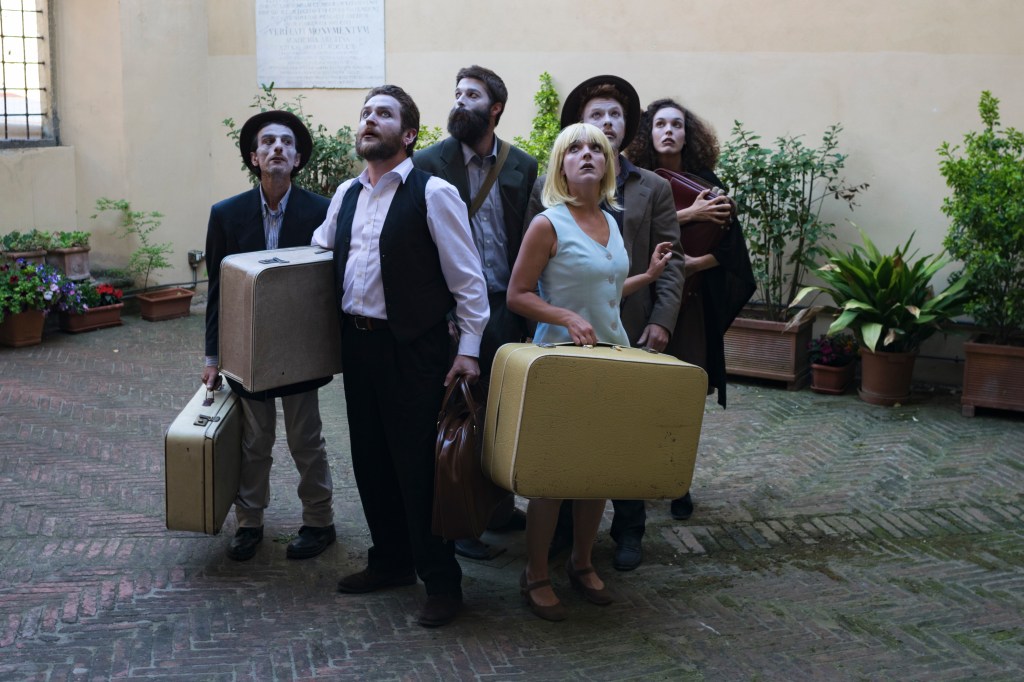 For any new person that came into the fold, I referred to them as a “jumper” because we seemed to attract people who were so versatile and were able to jump in and do whatever it was we were doing for the current project. It was a breath of fresh air to not feel confined or limited to a stage. If we felt like performing barefoot with a vintage front door and a drum set, we did. If we wanted to use puppets made of old iron trinkets we did. If we wanted to run throughout the streets of Arezzo dressed in a time zone that didn’t match modern day, we did it! If we wanted to sing and do voice soundscapes with shadows, we did it! If we wanted to use full face masks with no dialogue, we did it. In some performances, we did all of it at once.