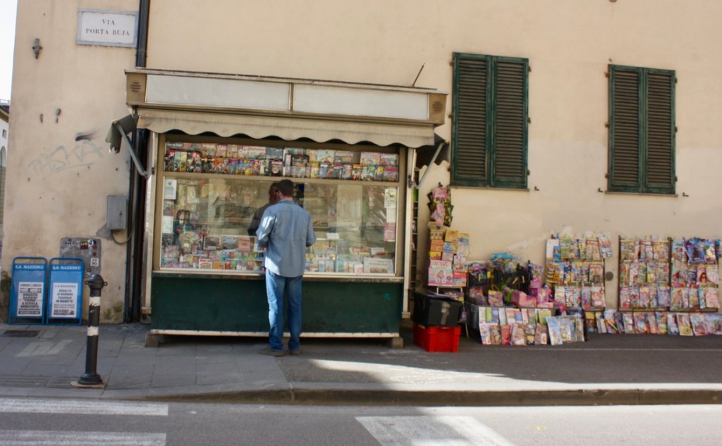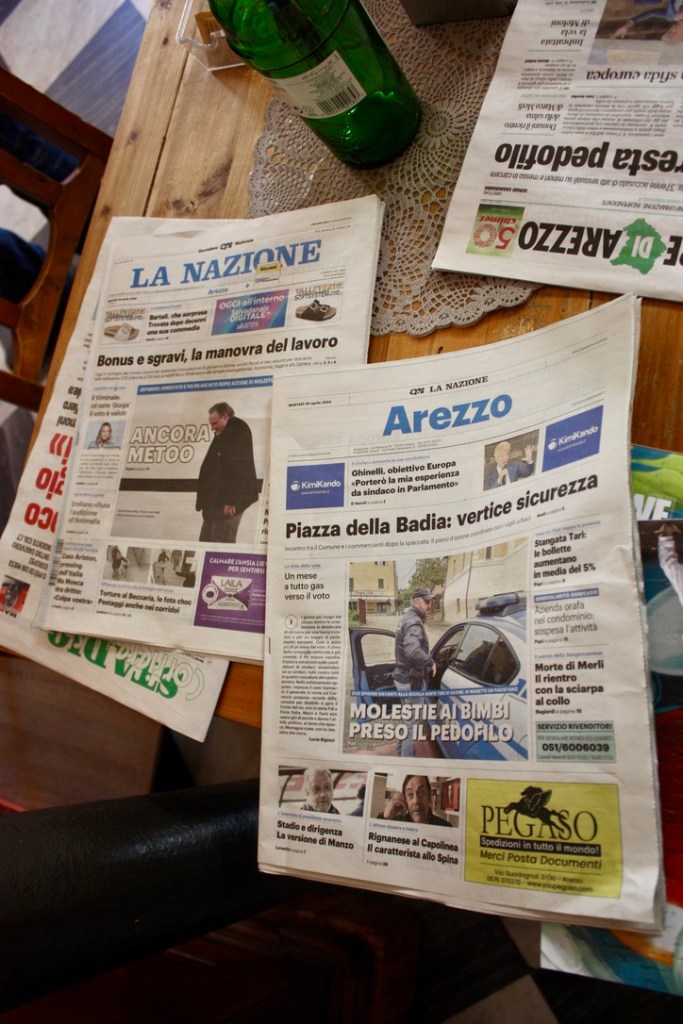 My husband Sam still relies heavily on these newsstands, at least the few that have not gone extinct. He reads the Economist, the Financial Times, Il Foglio and La Stampa and I often find myself picking up one of his papers, it usually lands on my daily chore list. Most bars in Arezzo will have the local papers decorating tables for the locals to skim through while they have a quick brioche and cappuccino.